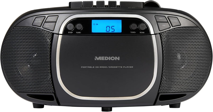 - Lieferumfang: MEDION LIFE MD44176 E66476 CD-/ MP3-/ Kassettenspieler, Netzkabel, Bedienungsanleitung, Garantiekarte