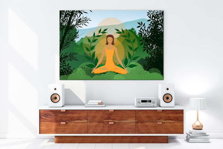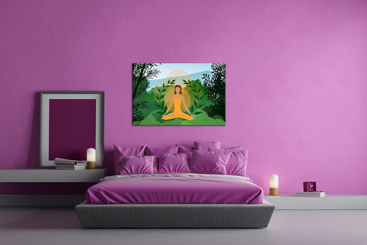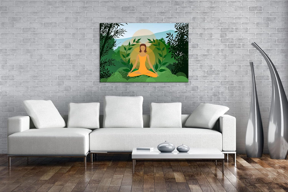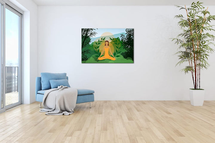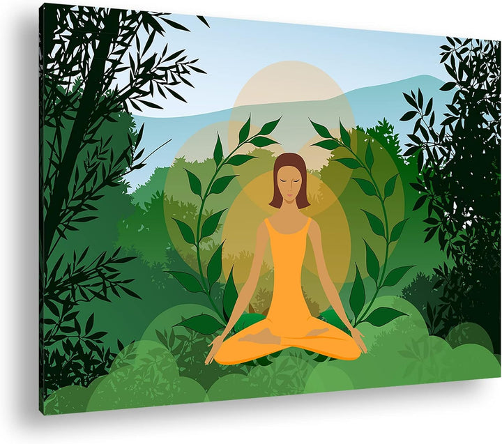 deyoli Meditation im Grünen Format: 80x60 als Leinwandbild, Motiv fertig gerahmt auf Echtholzrahmen,