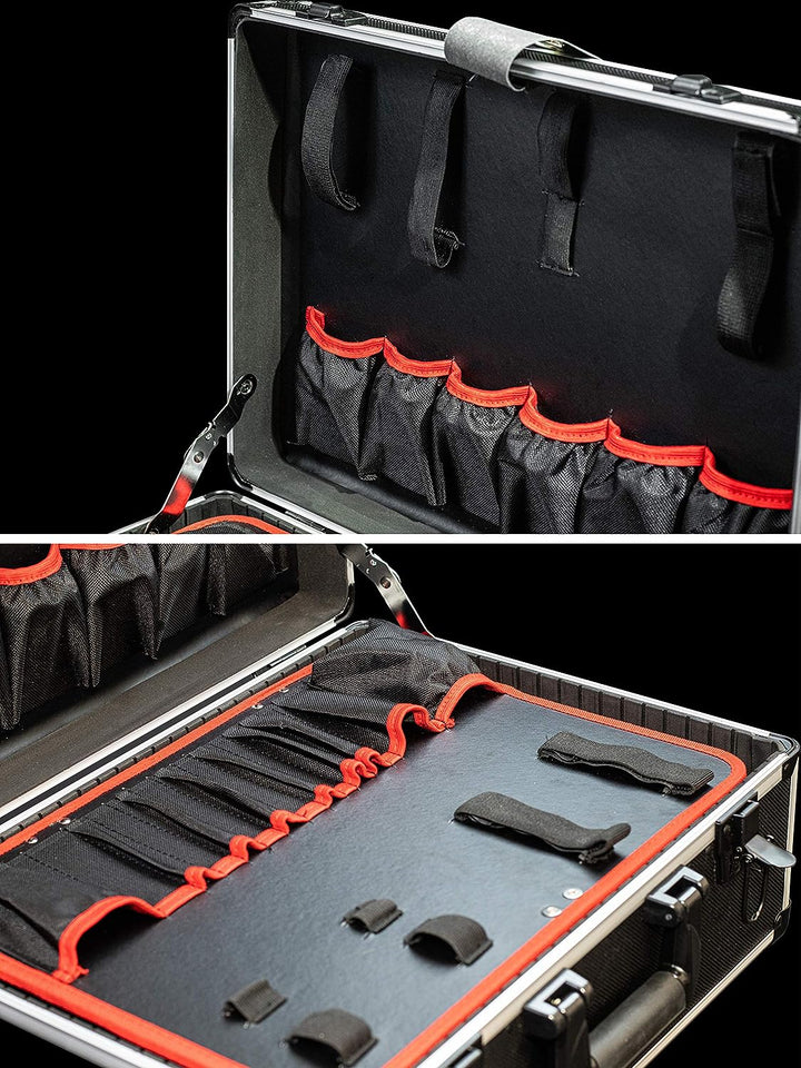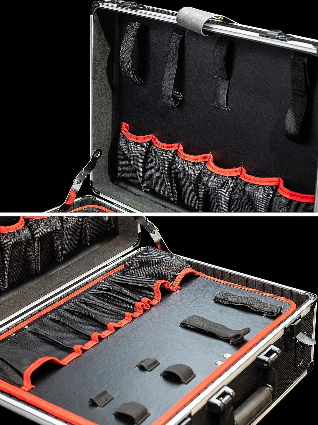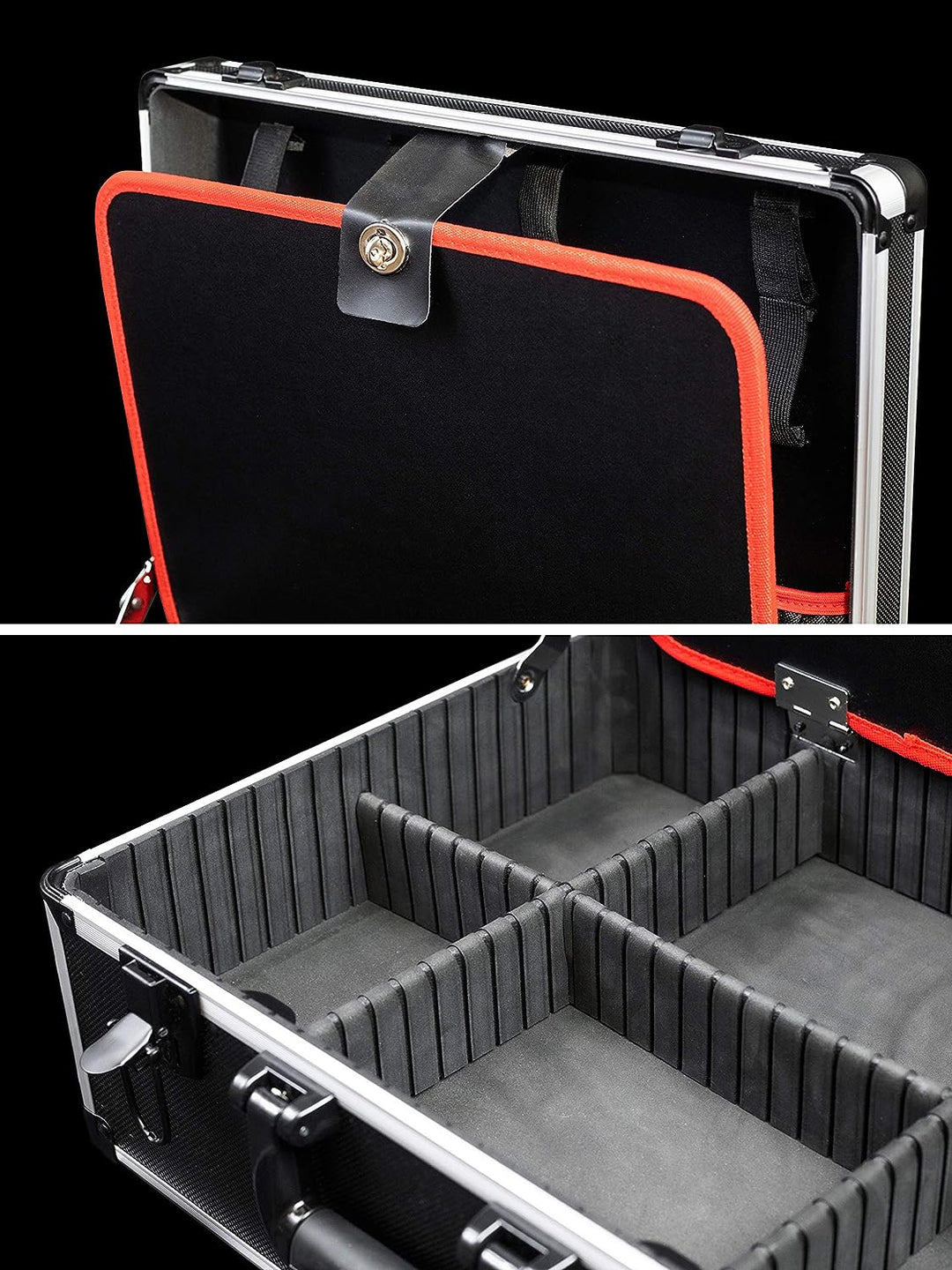 - PRAKTISCHER KOFFER: Gefertigt aus Aluminium mit abgerundeten Stosskanten & Eckenschutz | Komfort-Tragegriff für einen einfachen Transport | Integrierte Zwischeneinlage für das kompakte Verstauen des Werkzeugs | Mit schützender Innenpolsterung im