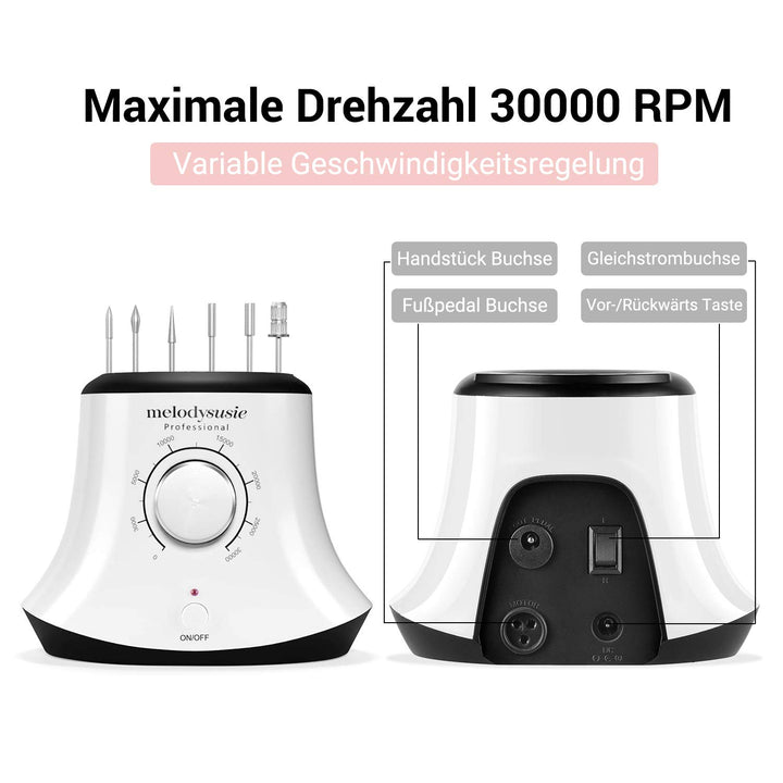 - Geschwindigkeit einstellbar: 0-30000 U / min mit stufenlosem Geschwindigkeitsregler, macht es für Sie einfacher und sicher. Professionelle Nagelpflege Maschine für zu Hause und Nagelstudio.