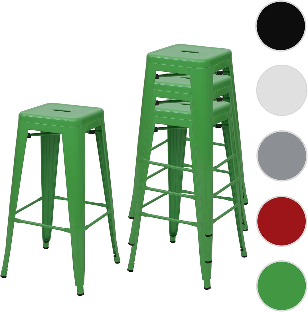 - Lieferumfang: 4x Barhocker | Material: Pulverbeschichtetes Metall | Stapelbar | Praktische Trageöffnung | Bodenschonende Gummifüsse | Querstreben für zusätzliche Stabilität | Fussstütze für bequemeres Sitzen