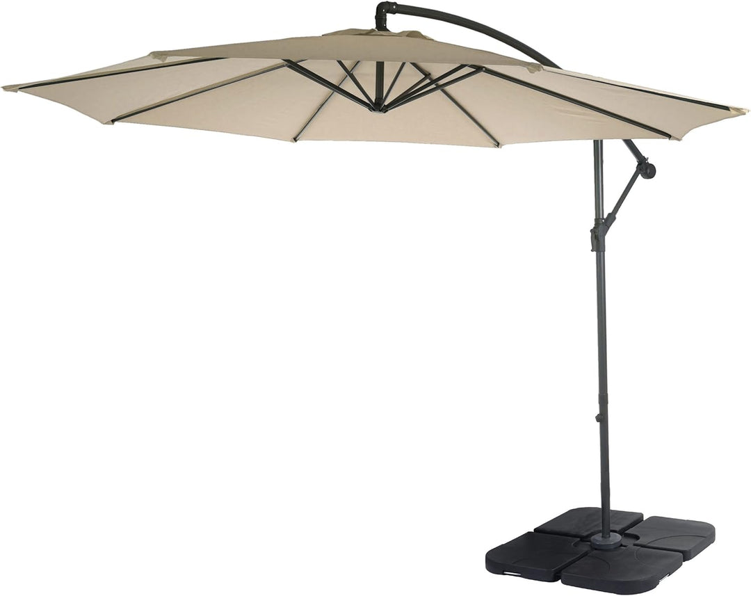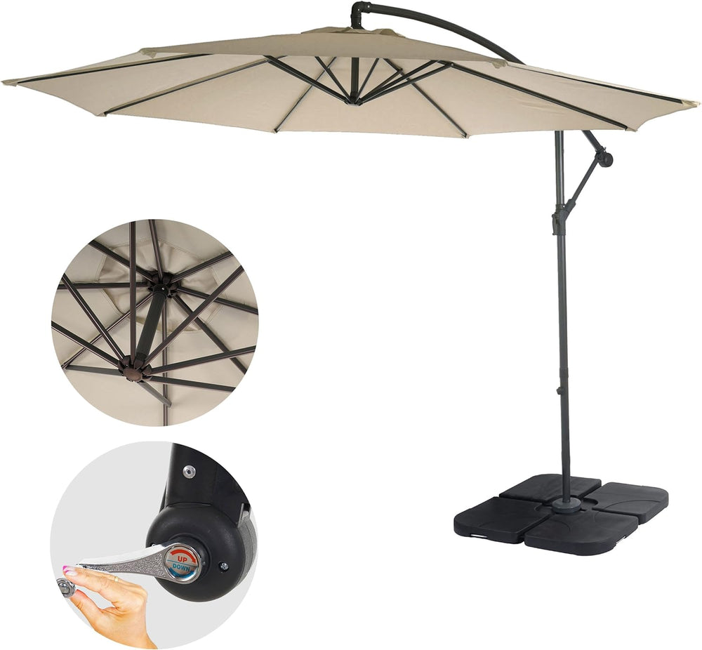 - Öffnungsmechanismus: Kurbel | Lieferumfang: 1x Ampelschirm wahlweise mit oder ohne Ständer | Sonnenschirm mit Handkurbel und Bodenkreuz | Mit Luftzirkulationshaube zur besseren Wärmeregulierung | Mast und Streben aus Stahl | Schirmbezug 100% Polyester