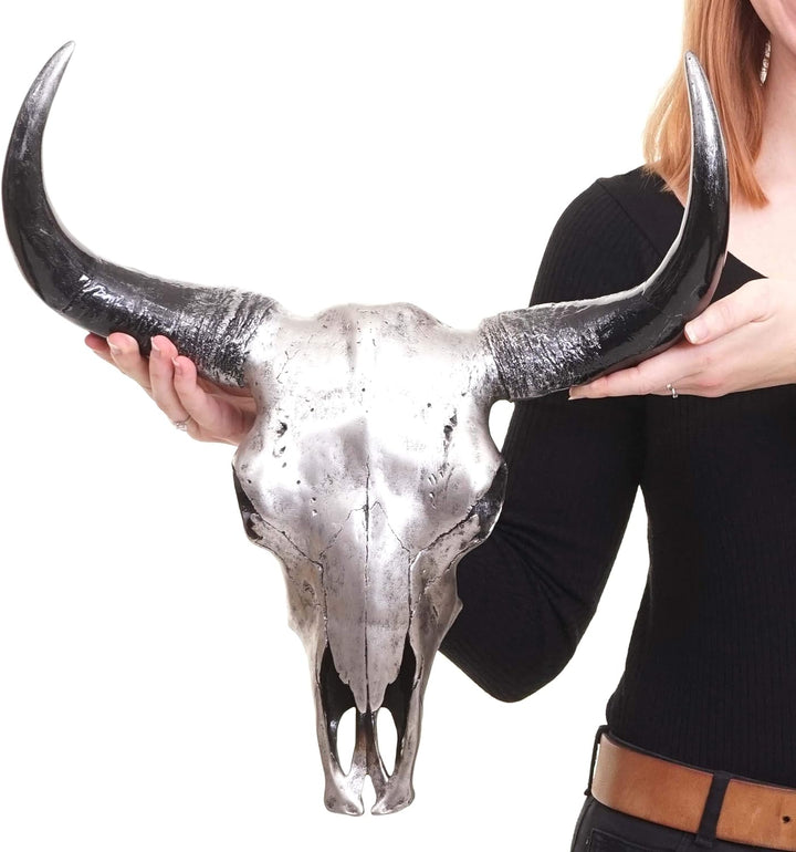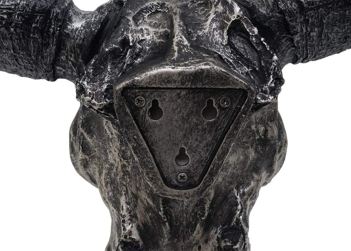 - Neben der hohen Bruchfestigkeit zeichnet sich dieser Schädel durch die detailreiche Verarbeitung aus. Die Hörner sind bereits ein fester Bestandteil wodurch das Schmuckstück nur noch anhand von drei Schrauben an der Rückseite befestigt werden muss.