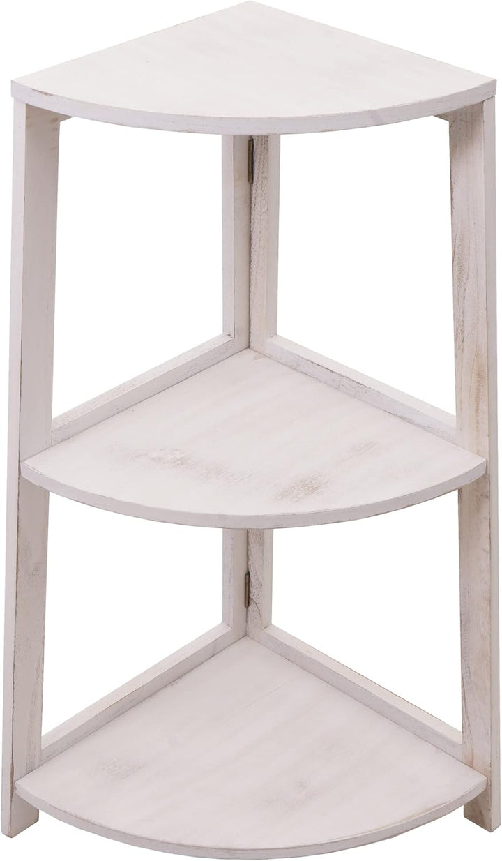 - Das Eckregal bietet drei Ablagen, auf denen Sie verschiedene Gegenstände wie Bücher, Dekorationsartikel oder Pflanzen platzieren können. Durch das Eckdesign ist es platzsparend und ideal für die Nutzung in Ecken oder kleinen Räumen.