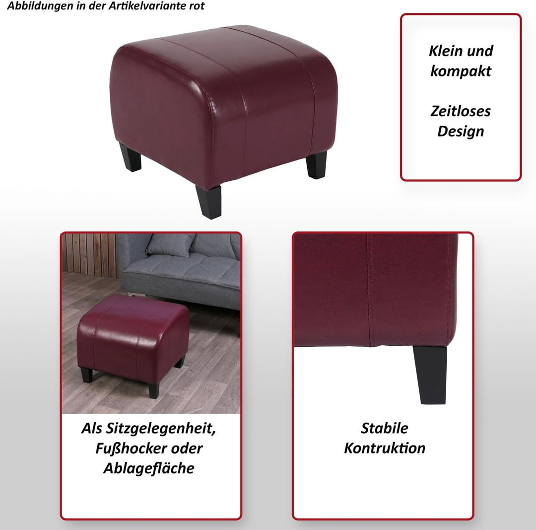 - Sitzfläche aus beschichtetem Spaltleder (Enthält nichttextile Teile tierischen Ursprungs) | Seitenteile aus Kunstleder (100% Polyurethan) | Als Fussablage oder Not-Sitzgelegenheit verwendbar | Puristisches Design | Hochwertige Verarbeitung |