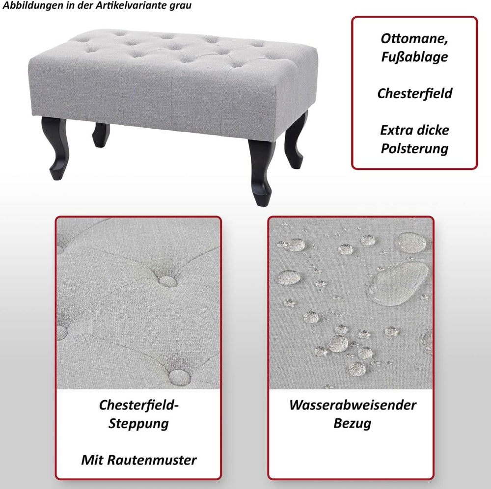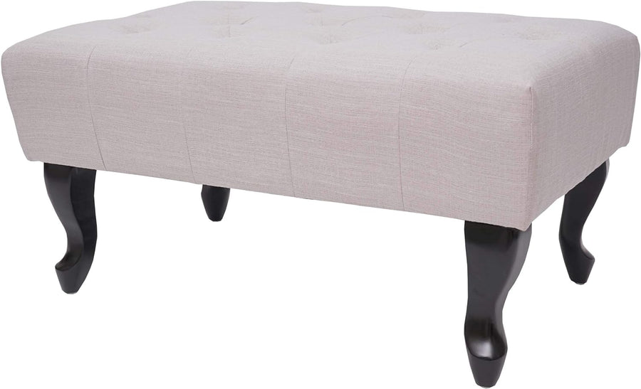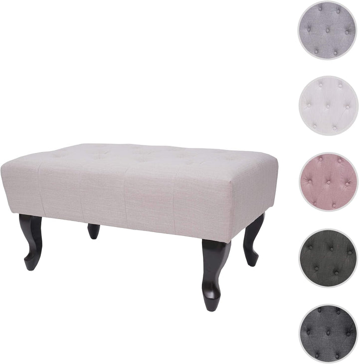 - Dimensionen (HxLxB): 39x47x77cm | Material: Bezug: Stoff/Textil (100% Polyester) - Polsterung: Schaumstoff - Rahmengestell: Kiefernholz - Füsse: massives Birkenholz | Farbe: Bezug: creme-beige - Nieten: silberfarben - Füsse: schwarz