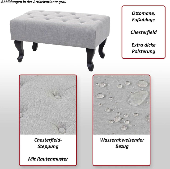 - Dieser glamouröse Polsterhocker im Barock-Stil ist in Ihrem Wohnzimmer ein echter Blickfang. Der Fusshocker besticht durch sein charakteristisches Rautenmuster mit Nietenbesatz, die sein majestätisches Aussehen unterstreichen.