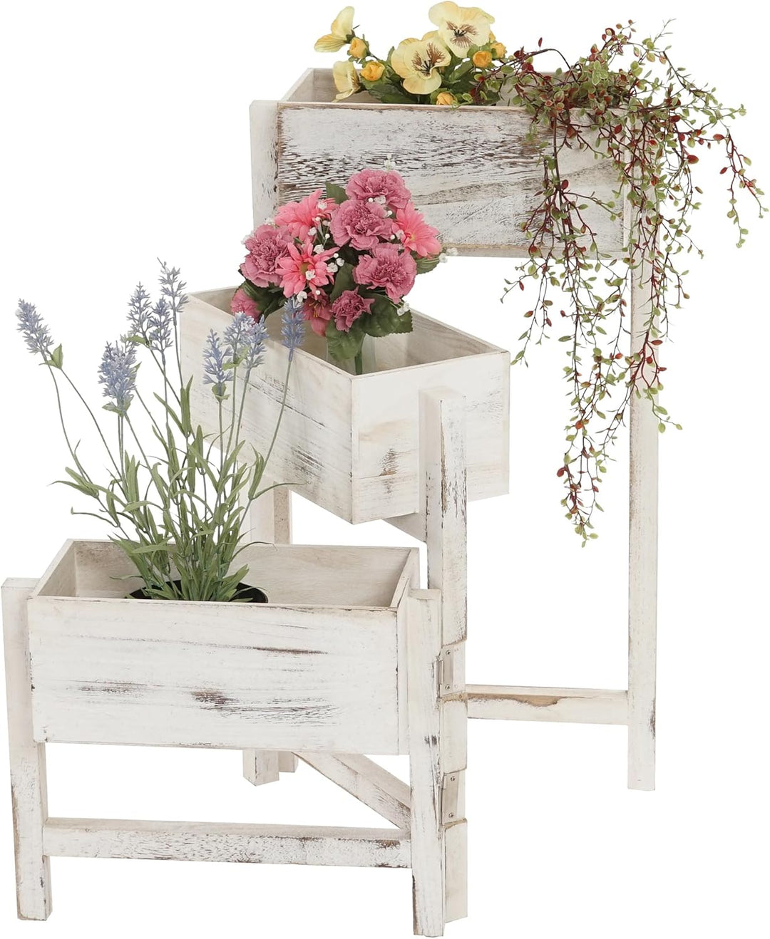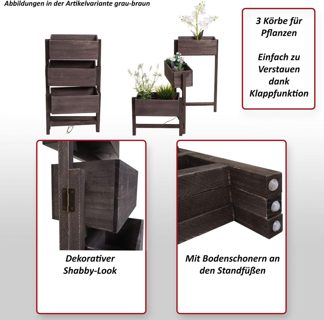 - 3 Körbe für Pflanzen | Einfach zu Verstauen dank Klappfunktion | Mit Bodenschonern an den Standfüssen | Individuell aufklappbar | Dekorativer Shabby-Look | Kein Aufbau notwendig | Aus massivem Paulowniaholz
