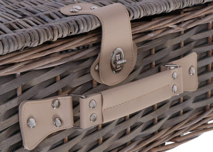 - Dimensionen (HxLxB): 19x31x50cm | Material: Korb: Weidenholz - Innenbezug: Stoff/Textil (70% Baumwolle 30% Polyester) - Besteck: Edelstahl mit Kunststoffgriff - Teller und Tassen: Porzellan | Farbe: Korb: grau - Innenbezug: schwarz-weiss