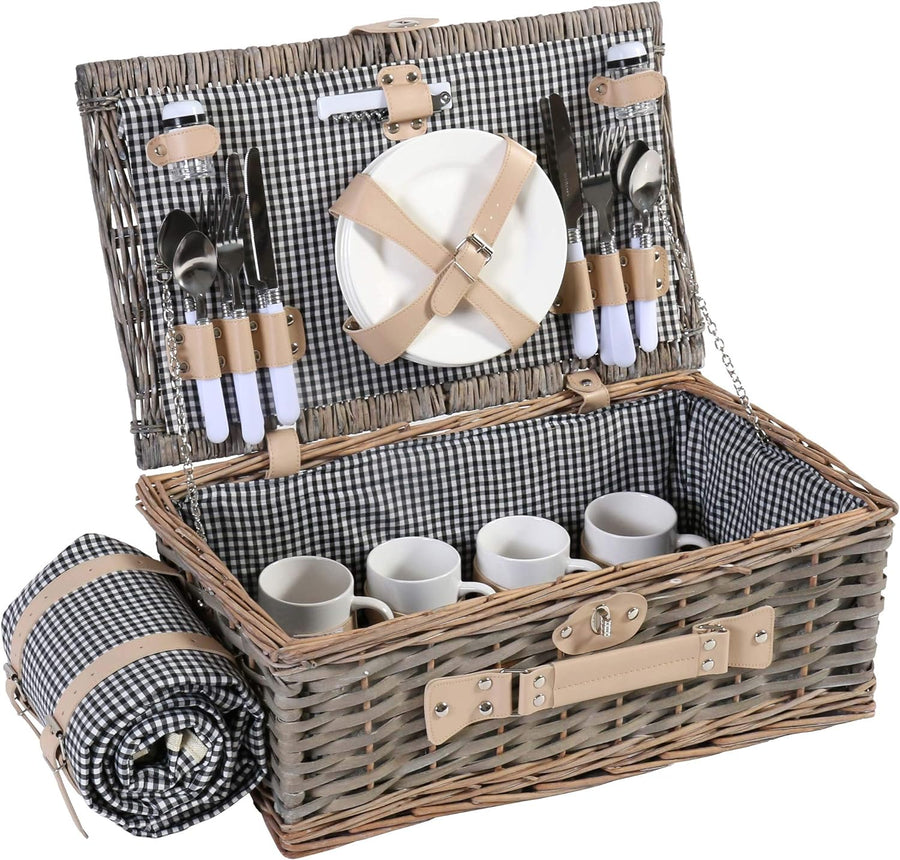 - Für 4 Personen | Halterungen für alle Utensilien | Seitlicher Tragegriff | Inklusive Picknickdecke | Mit Drehverschluss