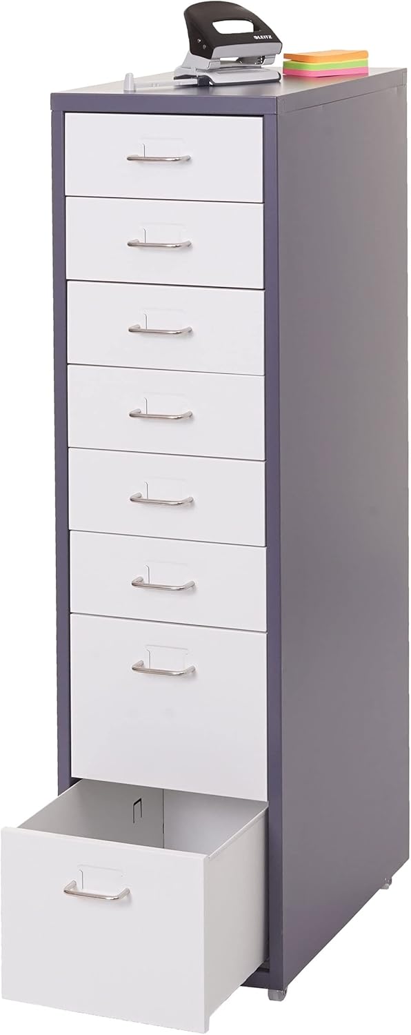 - Dieser schlichte Bürocontainer darf in Ihrem Arbeitszimmer nicht fehlen. Die acht Schubladen aus Stahl bieten ausreichend Platz für beispielsweise Büroutensilien, Computerzubehör und Dokumente, die nichts auf Ihrem Schreibtisch zu suchen haben.