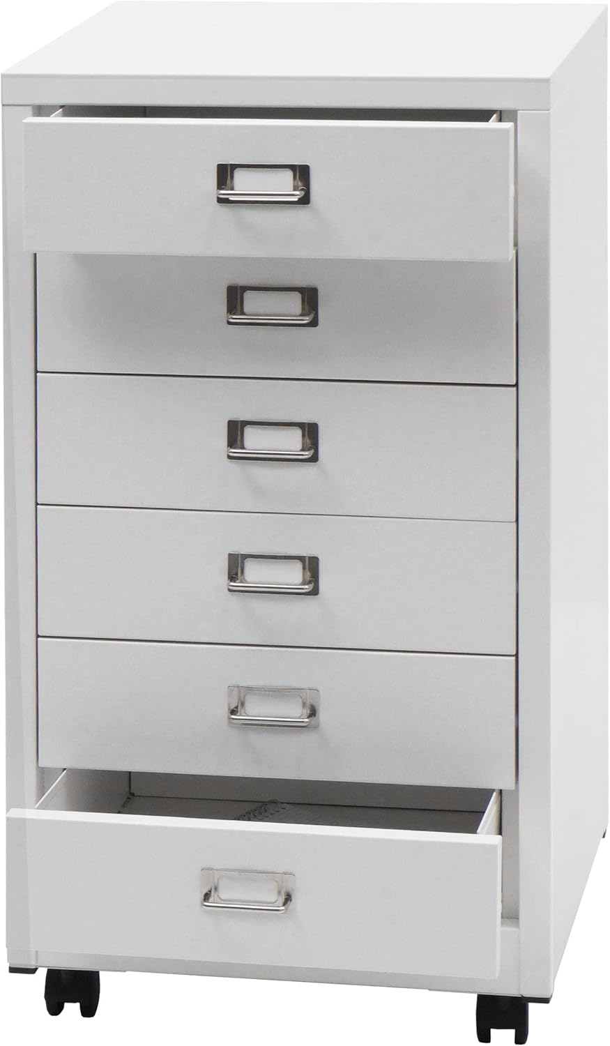• 6 geräumige Schubladen mit Haltegriffen | Schubladen mit Vollauszug | Mit Etikettenhalter | Vier Laufrollen (zwei feststellbar) | Metallstärke: 0,6 mm