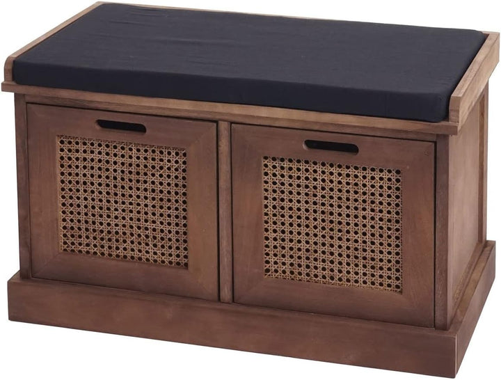 • Dimensionen (HxLxB): 47x40x75cm | Material: Gestell: Paulownia Holz und MDF aus Pappelholz - Polsterbezug: Stoff/Textil (50% Polyester und 50% Baumwolle) - Gitter: Rattan | Farbe: Braun, Polster schwarz