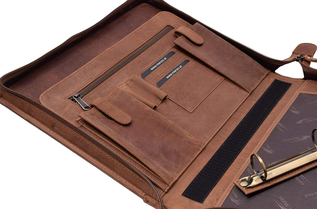 - Echt Leder Konferenzmappe von Menzo mit Reissverschluss für DIN A4-Format als perfekter Organizer.