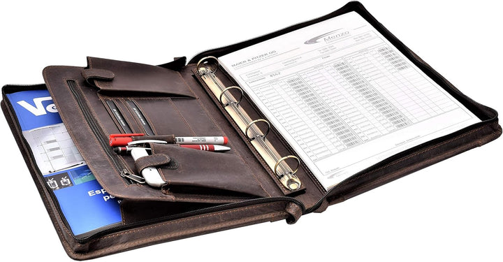 - Echt Leder Konferenzmappe von Menzo mit Reissverschluss für DIN A4-Format als perfekter Organizer.