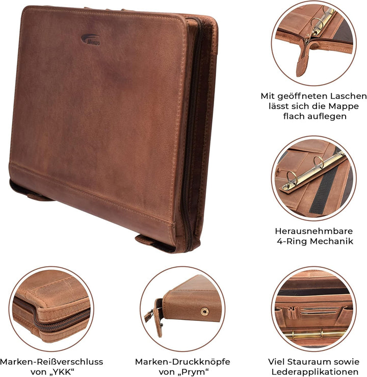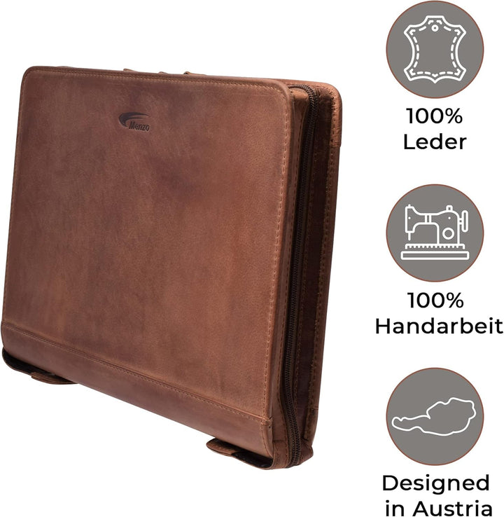- Echt Leder Konferenzmappe von Menzo mit Reissverschluss für DIN A4-Format als perfekter Organizer.