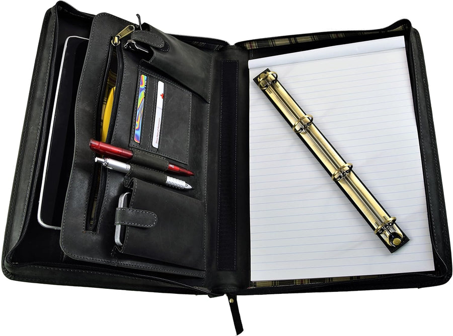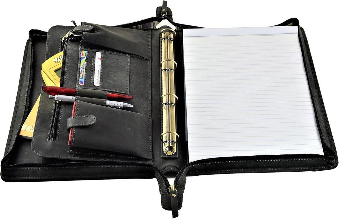 - Clever gestaltete Ringbuchmappe aus echten Büffelleder bietet Platz für Visitenkarten, Stifte, Tablet Unterlagen, Smartphone, Taschenrechner und vieles mehr.