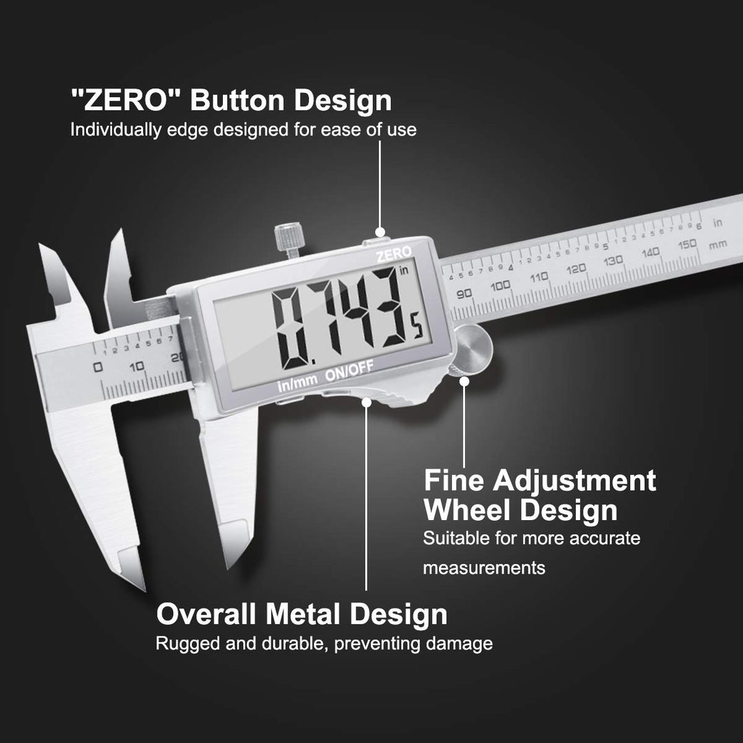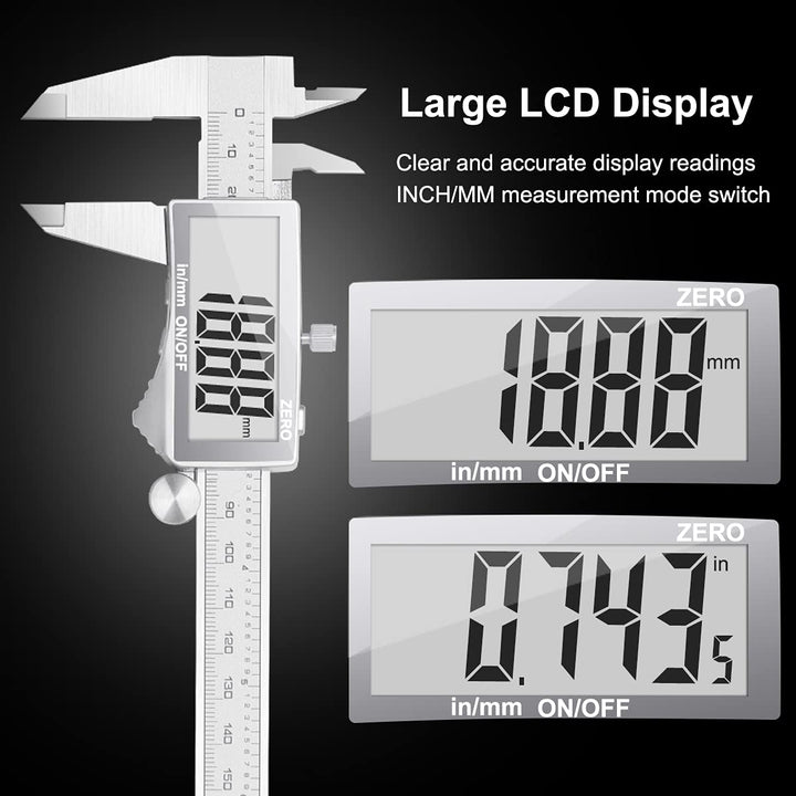 - Preciva 150mm Digitaler Messschieber mit grösserem Display aus Edelstahl für Innen-, Aussen-, Tiefen- und Stufenmessungen.