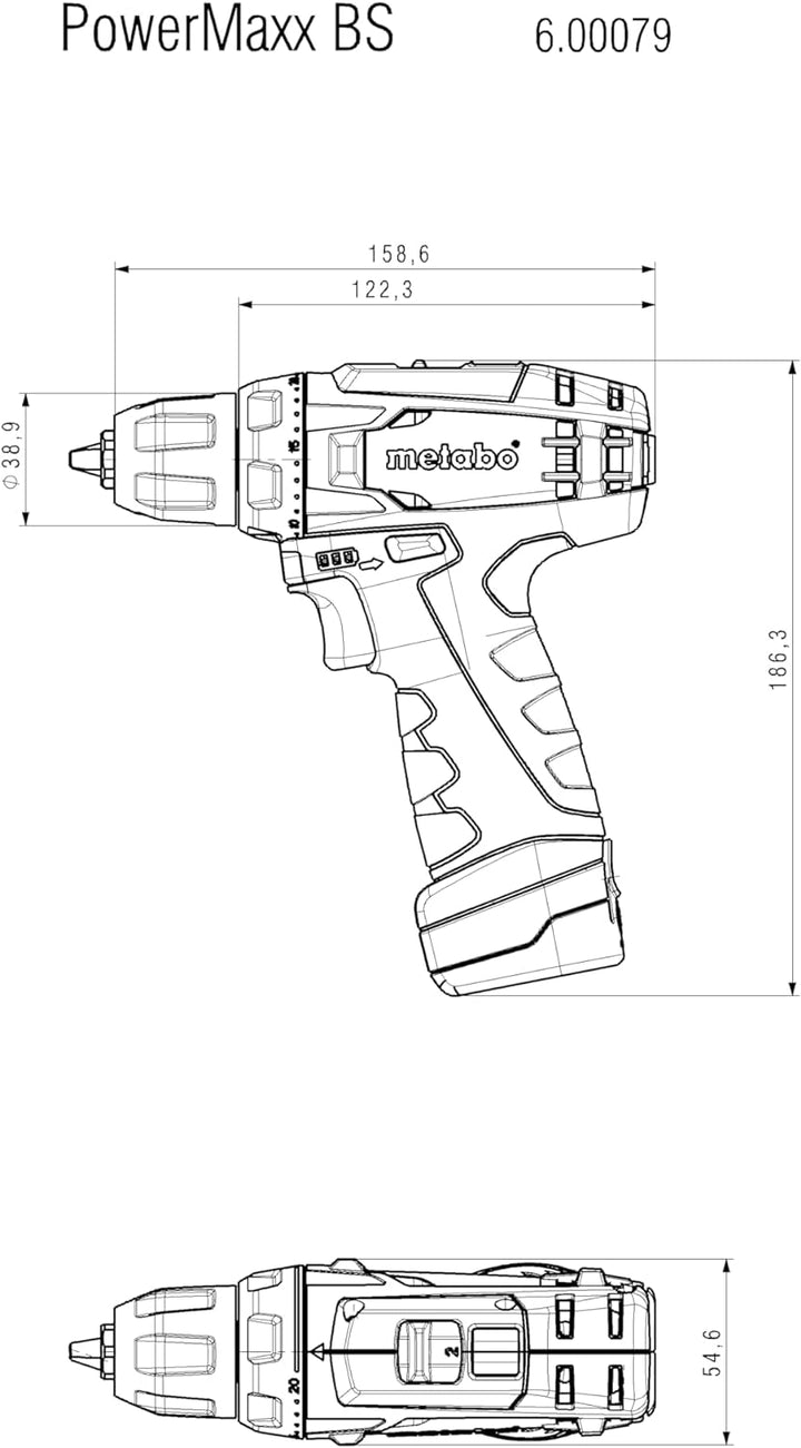- Lieferumfang: 1 x Metabo Akku-Bohrschrauber PowerMaxx BS (600079500) / Inkl. Schnellspannbohrfutter, Gürtelhaken, Li-Power Stecksitz-Akkupack (12 V/2,0 Ah), Ladegerät LC 40 und Werkzeugtasche