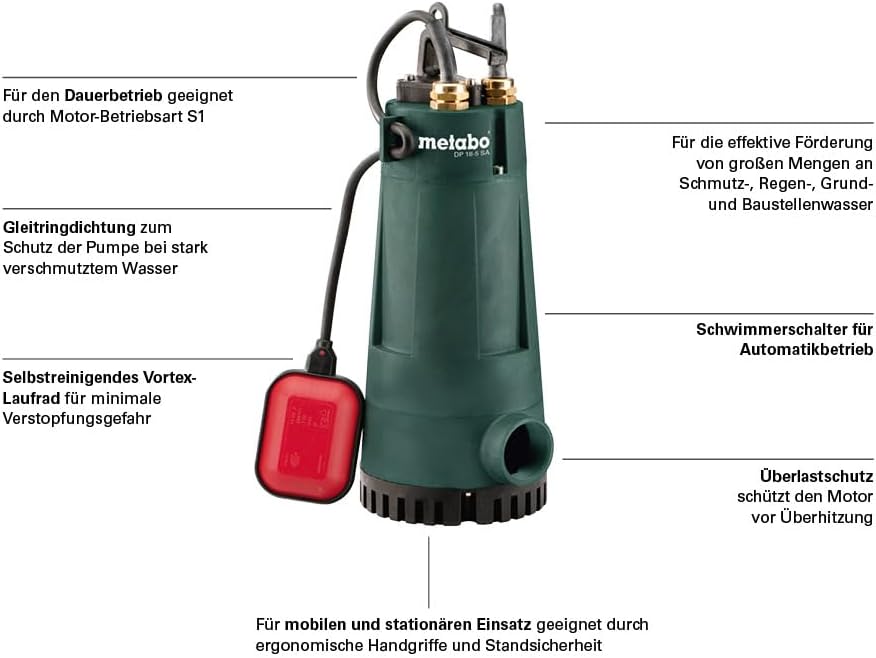 Metabo Drainagepumpe DP 18-5 SA (604111000) Karton, Nennaufnahmeleistung: 900 W, Max. Fördermenge: 1