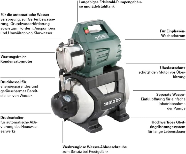 Metabo Hauswasserwerk HWW 4500/25 Inox Plus (600973000) Karton, Nennaufnahmeleistung: 1300 W, Max. F