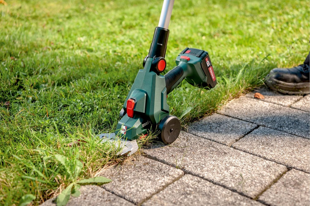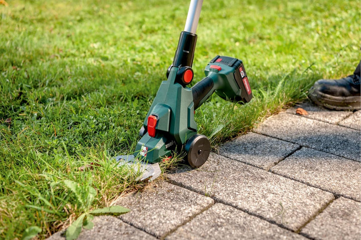 - Stabiler Teleskopstab für rückenschonendes, exaktes Schneiden von Rasenkanten