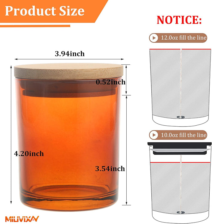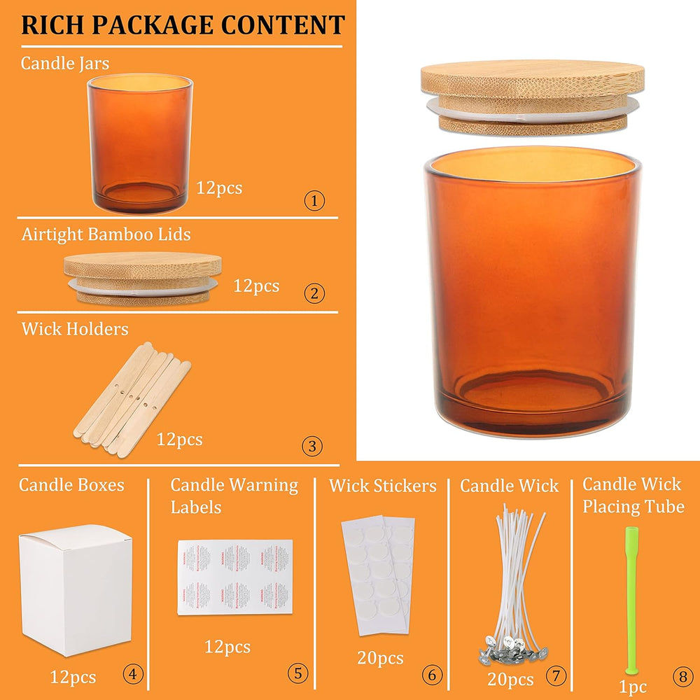 - ▶️ Kaufen Sie es und Sie erhalten: 12 Stück bernsteinfarbene Glasbehälter mit luftdichtem Bambusdeckel, 20 Stück Kerzendochte, 20 Stück Kerzendocht-Aufkleber, 20 Stück Dochthalter, 12 Stück Kerzen-Warn-Etiketten, 12 Stück Kerzen-Boxen, 1