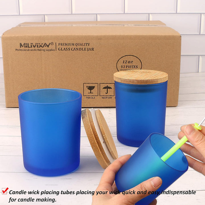 - ▶️ Kaufen Sie es und Sie erhalten: 12 Stück mattierte blaue Glasbehälter mit luftdichtem Bambusdeckel, 20 Stück 15,2 cm Kerzendochte, 20 Stück Kerzendocht-Aufkleber, 20 Stück Dochthalter, 12 Stück Kerzen-Warn-Etiketten, 12 Stück