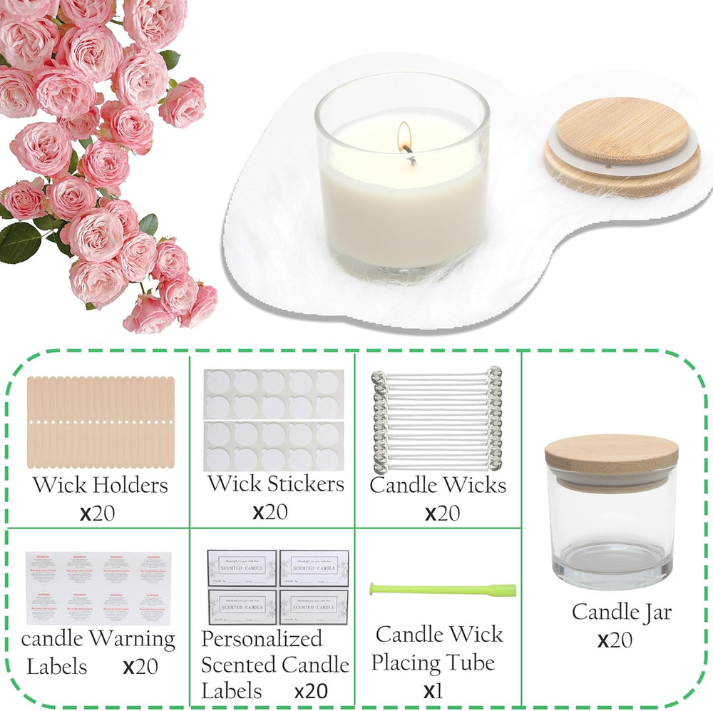 • ▶️ Kaufen Sie es und Sie erhalten: 20 transparente Gläser mit luftdichtem Bambusdeckel, 20 Stück 8,9 cm Kerzendochte, 20 Stück Kerzendocht-Aufkleber, 20 Stück Dochthalter, 20 Stück Kerzenwarnetiketten, 1 Stück Kerzendocht-Platzierungsröhren,