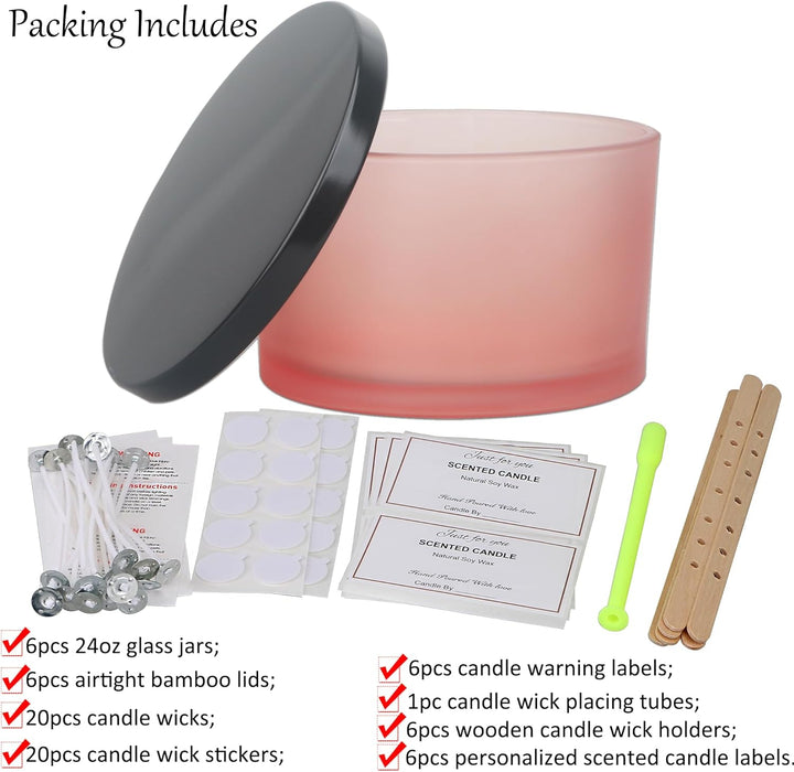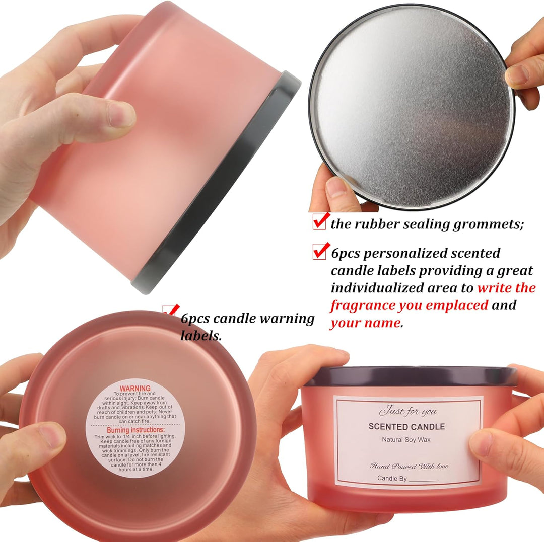 - Kaufen Sie es und Sie erhalten: 6 Stück breite Öffnung 680 ml Milchglas mit luftdichtem Metalldeckel, 20 Stück 8,9 cm Kerzendochte, 20 Stück Kerzendocht-Aufkleber, 6 Stück 7-Loch-Holzkerzendochthalter, 6 Stück Kerzenwarnetiketten, 1 Stück