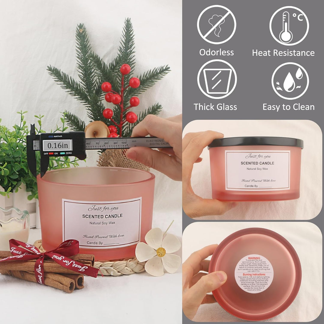 - 【Grosse Kapazität & leicht zu reinigen】 680.4 g Glaskerzenglas, misst 5,1 Zoll im Durchmesser, 3,1 Zoll in der Höhe und Glaswand von 0,5 cm, geeignet für 20/21/22/23/680.4 g 2/3/4 Docht Kerzen. Sie sind perfekt für die Herstellung von Soja-Kerzen