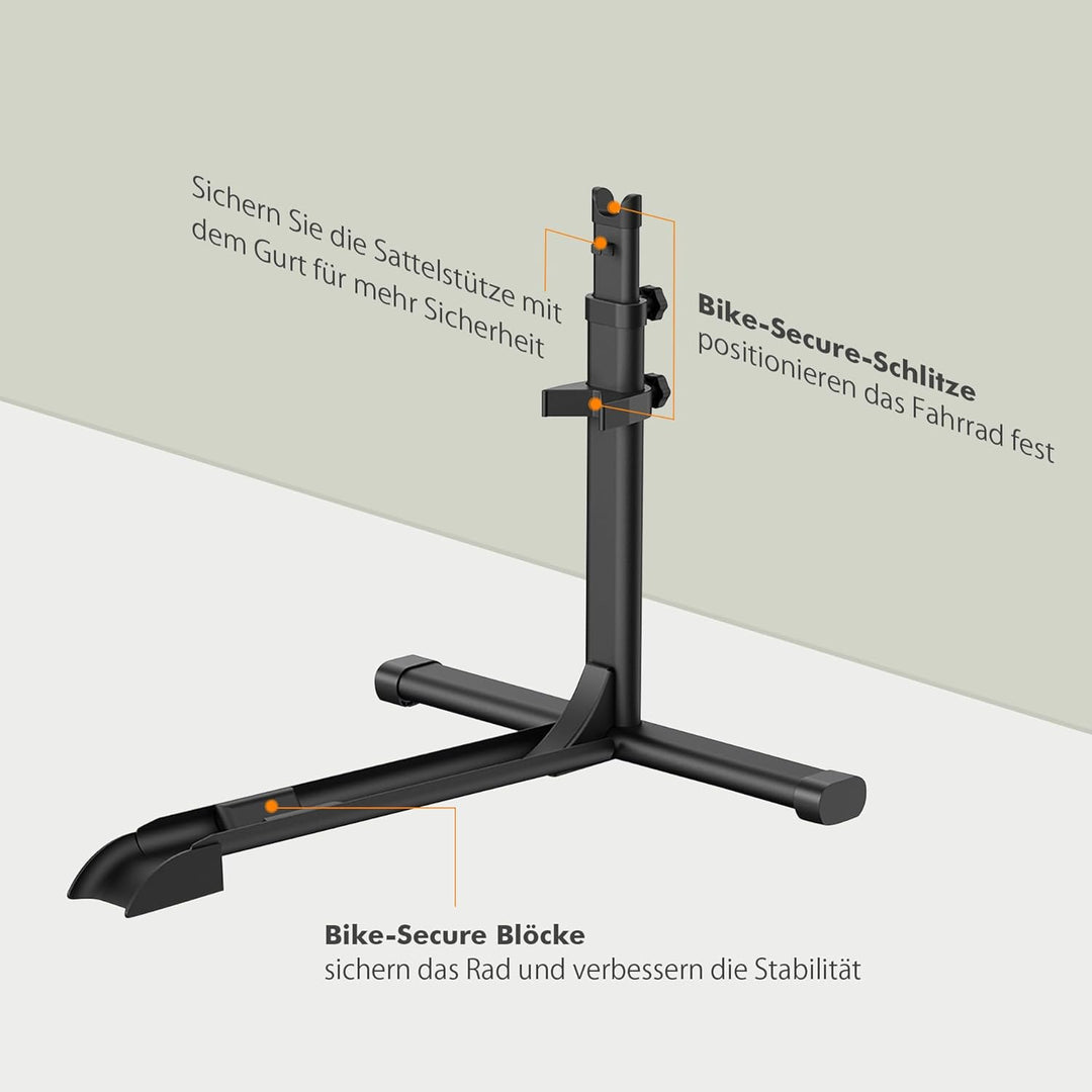 - ✅Anpassbare Höhe: Der Ständer lässt sich an Ihren individuellen Stauraum anpassen und verfügt über höhenverstellbare Ablagen, die von 46,8 cm bis 76,6 cm reichen, um sicherzustellen, dass Ihr Fahrrad bequem und sicher Platz findet