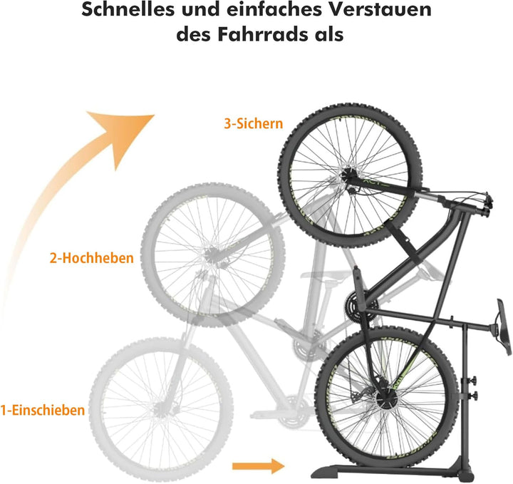 - ✅Platzsparende Eleganz: Mit diesem platzsparenden, aufrechten Fahrradständer können Sie die Kunst der effizienten Organisation geniessen. Mit ihm können Sie den verfügbaren Platz optimal nutzen, indem Sie Ihr Fahrrad senkrecht an einer Wand