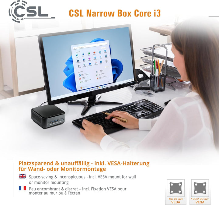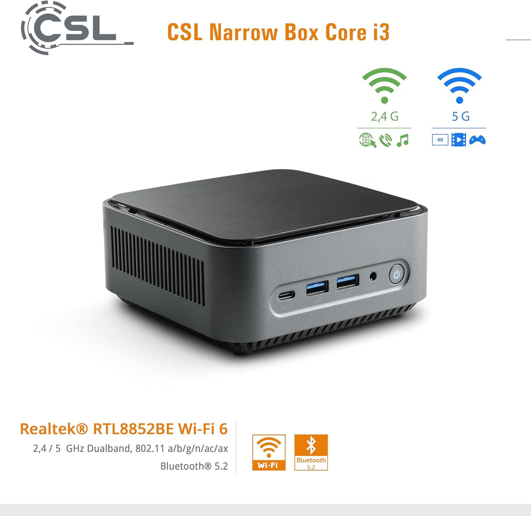 - Wir präsentieren Ihnen die CSL Narrow Box Core i3 – einen ultrakompakten Mini-PC mit beeindruckender Leistung für Office, Multimedia und 4K-Entertainment!