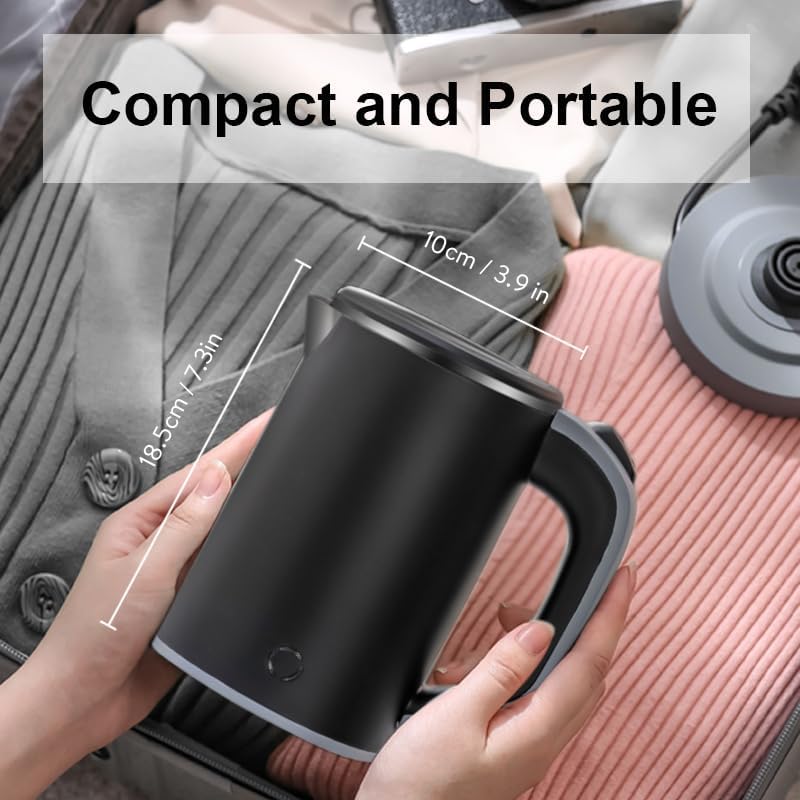 - Perfekte Wahl für unterwegs: Der Wasserkocher ist klein und tragbar, mit Abmessungen von 14 x 10 x 18,5 cm. Er passt problemlos in einen Koffer, Rucksack oder Gepäck, ist leicht zu tragen, geeignet für Reisen, Urlaub, Hotel oder Camping, gesund und