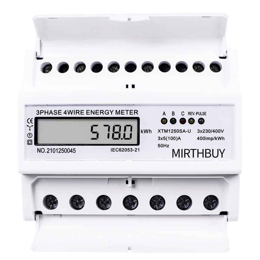 - Mit einem LC-Display mit 6+1 digitalen Stellen ist der Stromverbrauch immer im Blick, die LED Impuls Anzeige dient als Lastindikator für jede Phase des drei Phasen Stromzähler.