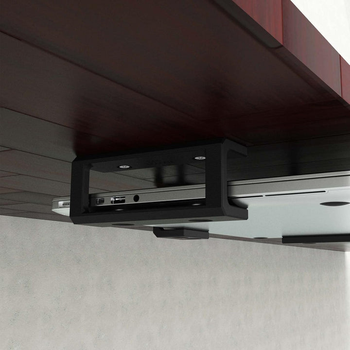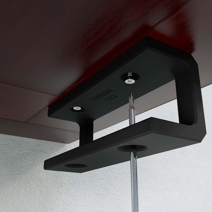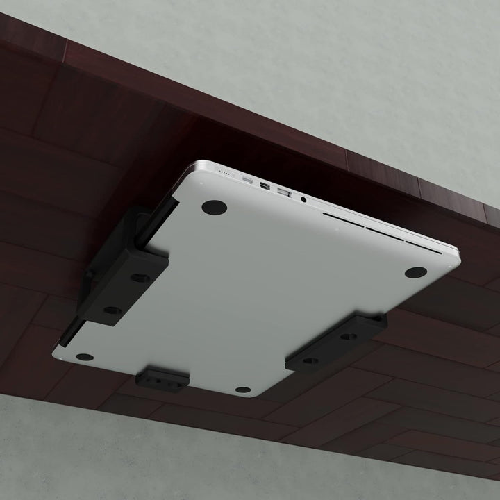 - Lieferumfang: 1x Untertisch Halterungs Set Schwarz für Laptop / MacBook 0-35mm / 6x Holzschrauben