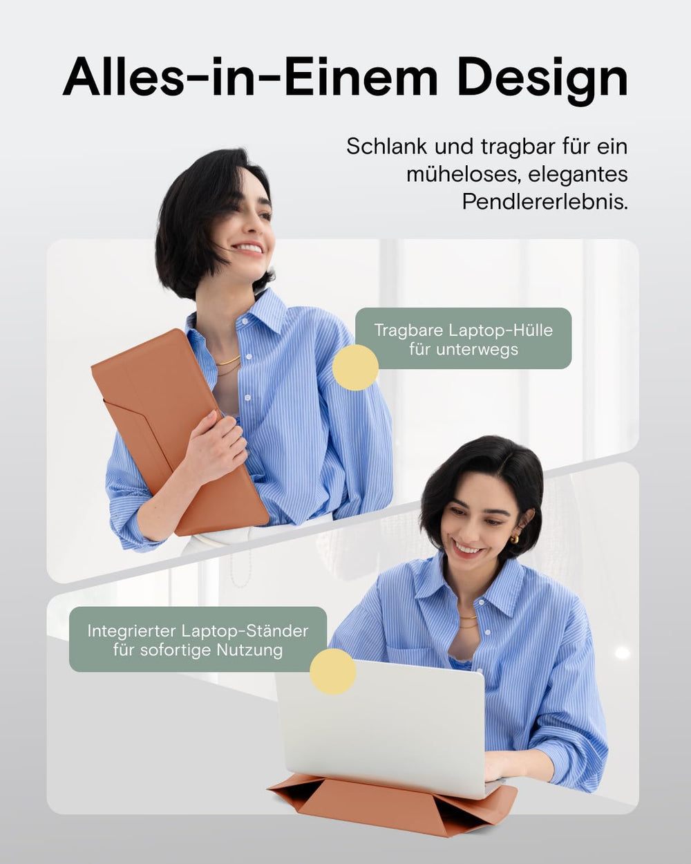 - [Zwei verstellbare Winkel, ununterbrochener Komfort]: Die Tragetasche kann durch Zusammenklappen zu einem Ständer umgewandelt werden. Es gibt zwei einstellbare Winkel, die den Anforderungen in verschiedenen Szenarien entsprechen und den Bildschirm auf
