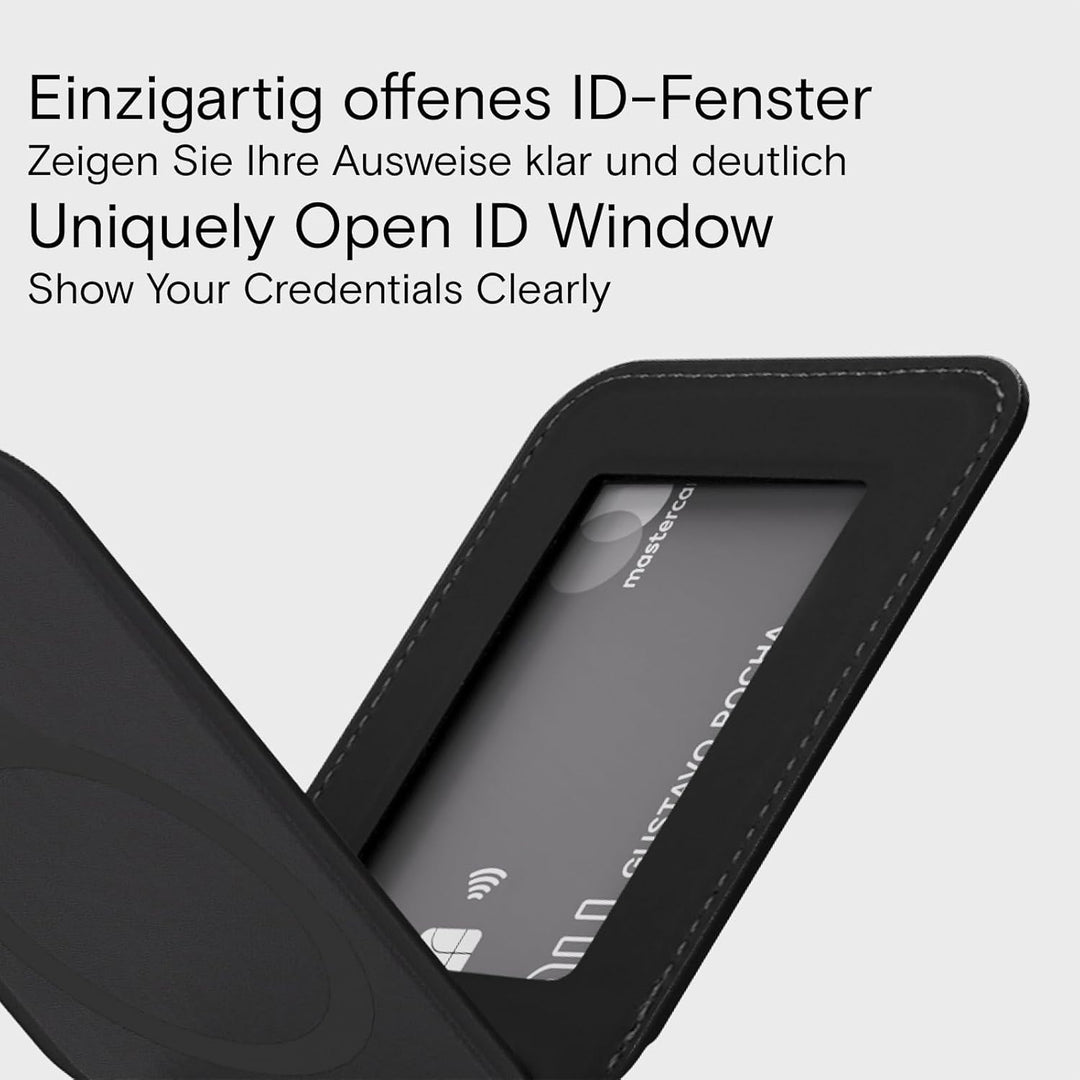 - [Bequeme Kartennutzung] Mit unserem magnetischen Kartenhalter können Sie Ihre NFC-Tap-to-Pay-fähige Karte, wie z. B. eine Zugangskarte oder eine Kreditkarte, auf der Vorderseite platzieren. Dann können Sie sie durchziehen, um Ihre Karte zu benutzen,