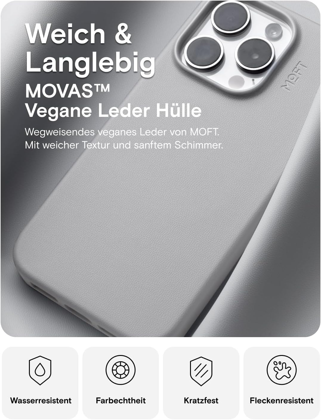 - [Haltbarkeit, Nachhaltigkeit, Weichheit] - Das Snap Phone Case MOVAS wird aus veganem Leder der MOVAS-P*-Serie hergestellt, einem revolutionären, von MOFT entwickelten veganen Leder. Es ist der Gipfel der Balance zwischen Weichheit, Haltbarkeit und
