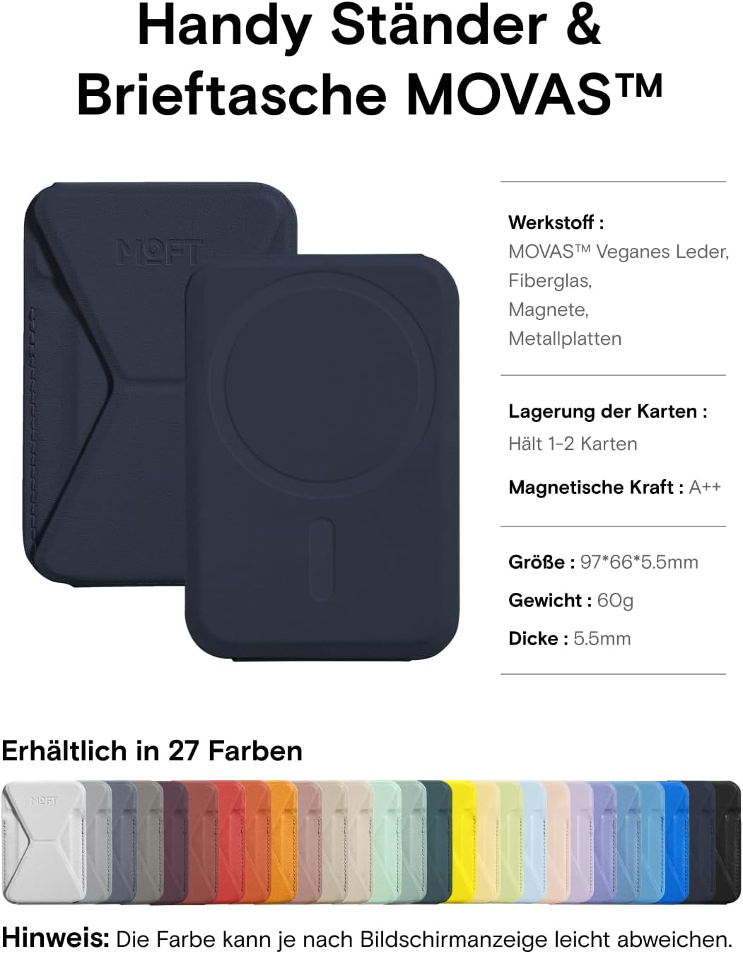- [Starke Magnete] - Das schlankere MOVAS Leather ermöglicht stärkere Magnete, ohne dass es zu viel Platz wegnimmt. Es lässt sich mit einer starken Magnetkraft von bis zu 15N, die dem Gewicht von 6 iPhone 14 Pro Max-Geräten entspricht, sicher an Ihrem