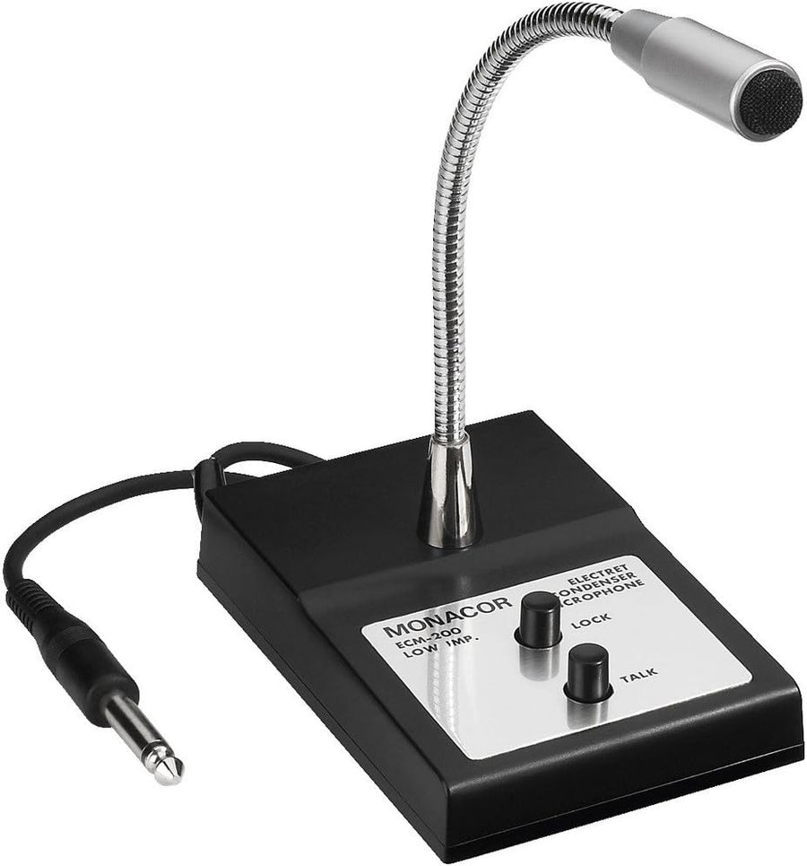 MONACOR 230280 ECM-200 Tisch-Mikrofon mit Schwanenhals, Elektret-Mikro fürDurchsagenundkleineGespräc