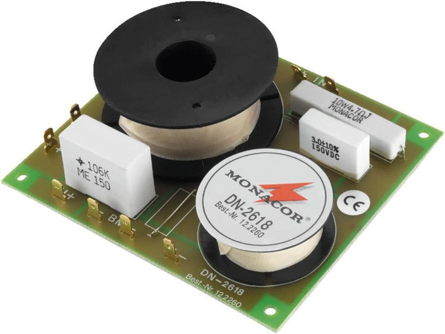 MONACOR DN-2618 2-Wege-Weiche 8 ohm, Hochwertige Bauteile, Belastbarkeit 350W für den Innenbereich m