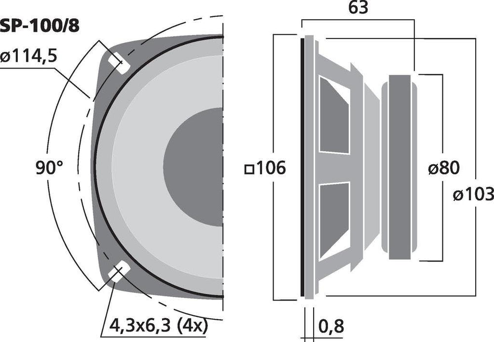 MONACOR SP-100/8 Hi-Fi Tiefmitteltöner, Bass Speaker mit stabiler Papiermembran, hochwertiger Alu-Sp