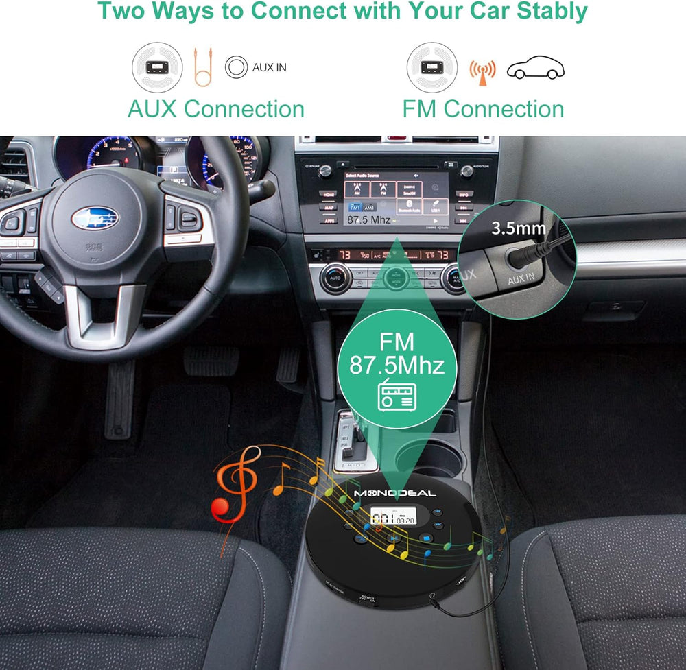 - CD Player mit FM-Sender: 2022 Monodeal upgrade tragbarer CD Player, eingebauter FM-Sender kann drahtlos mit dem Autoradio gekoppelt werden, damit Sie Musik geniessen oder Hörbücher hören können, während Sie zur Arbeit gehen oder bequemer reisen. Es