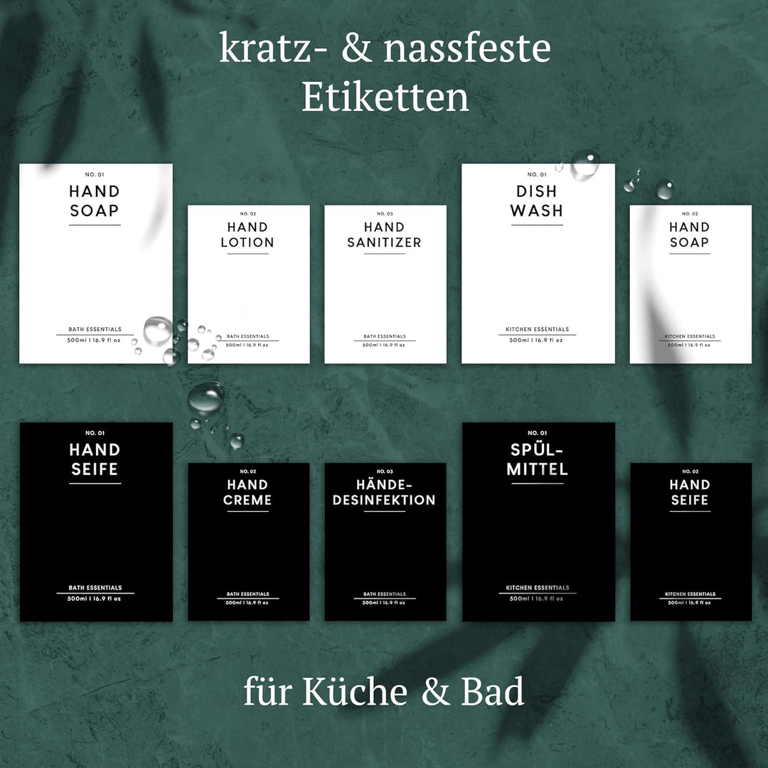 - INDIVIDUELL & MINIMALISTISCH 10 wasserabweisende Sticker im Scandi Look sind im Lieferumfang mit enthalten. Hochwertige vinyl Aufkleber in Schwarz und Weiss. Entscheide selbst ob Du die Flaschen mit den mitgelieferten Aufklebern in Deutsch / Englisch