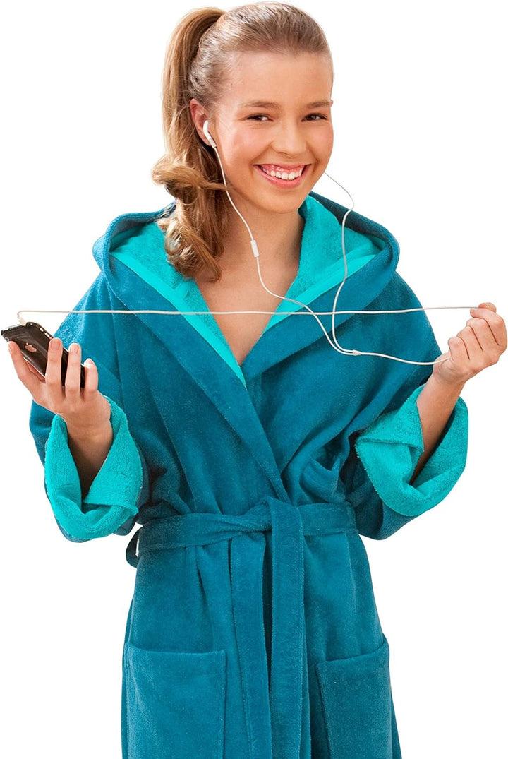- PERFEKTE GESCHENK IDEE: Jeder freut sich über diesen kuscheligen Bademantel in attraktiven Farben. Passend für Kinder, Teenager und Jugendliche in verschiedenen Grössen von 9 bis 17 Jahren.