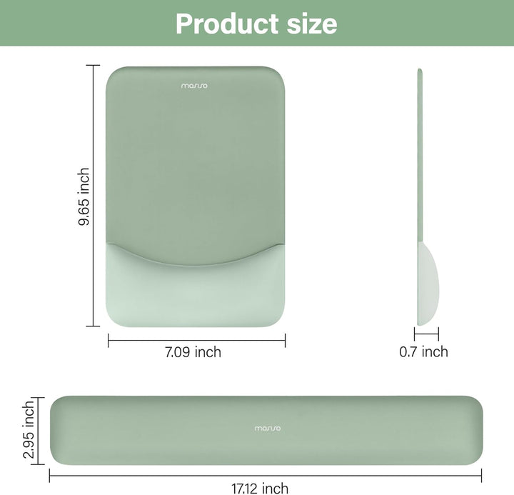 - Abmessungen der rechteckigen Tastatur-Handgelenkauflage: 17,12 x 2,95 Zoll / 43,5 x 7,5 cm, die der rechteckigen Mauspad-Handgelenkstütze: 9,65 x 7,09 Zoll / 24,5 x 18 cm. Passt zu allen Mäusen/Tastaturen. Kompatibel mit MacBook / Notebook / Chromebook