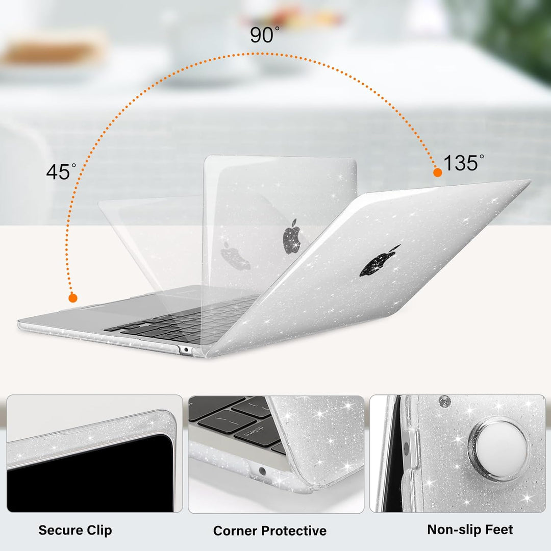 - Das obere und untere Gehäuse hat viele kleine Glitzer hinzugefügt, sodass es je nach Lichteinfall unterschiedliche Farben zeigt. Das glitzernde Hüllendesign macht Ihren Laptop immer attraktiver und modischer. Hülle abmessungen: 12 x 8,5 x 0,46 Zoll /