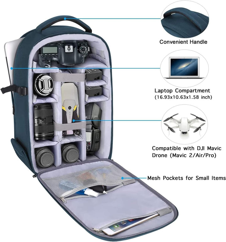 - Diese multifunktionale Kameratasche ist professionell für DSLR / SLR / spiegellose Kameras verschiedener Marken konzipiert. Kompatibel mit Nikon D5600, D5300, D3500, D3400, D3300, D3200; kompatibel mit Canon EOS Rebel T6, T6i, SL2 und andere